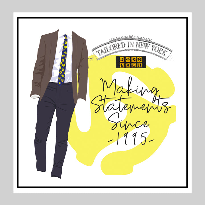 I started Josh Bach Neckwear out of my apartment in lower Manhattan. The goal was simple: give the necktie personality in a cool, understated kind of way. This was NOT a novelty tie...but a perfectly wearable necktie that stood for something...and had a pulse. I created my first eight patterns. Men loved my designs, women loved my designs for their men, and fashion and wardrobe stylist loved my designs for their clients. Soon my neckties were popping up on celebrities, in movies, TV shows, on politicians, reporters, anchormen, scientists, astronomers, mayors, governors and, quite simply, men that wanted to be more expressive with their wardrobe choices.